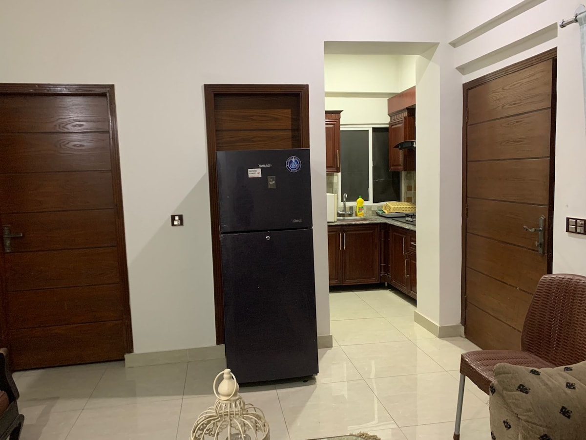 Modern 2BHK Apartment – Comfort & Style Welcome to your home away from home! This beautifully designed 2bhk offers a perfect blend of comfort! ✨ Features: - Opposite Amazon mall where guest can get deals and a rooftop Sheesha cafe - 3 minutes drive away from Giga Mall - largest shopping centre of the city. - 2 minutes from famous Tehzeeb bakery and other cool eateries. - 8 minutes from padel that is situated in Dha 2. - 7 minutes from Dha 2 entrance where centre park includes famous spots