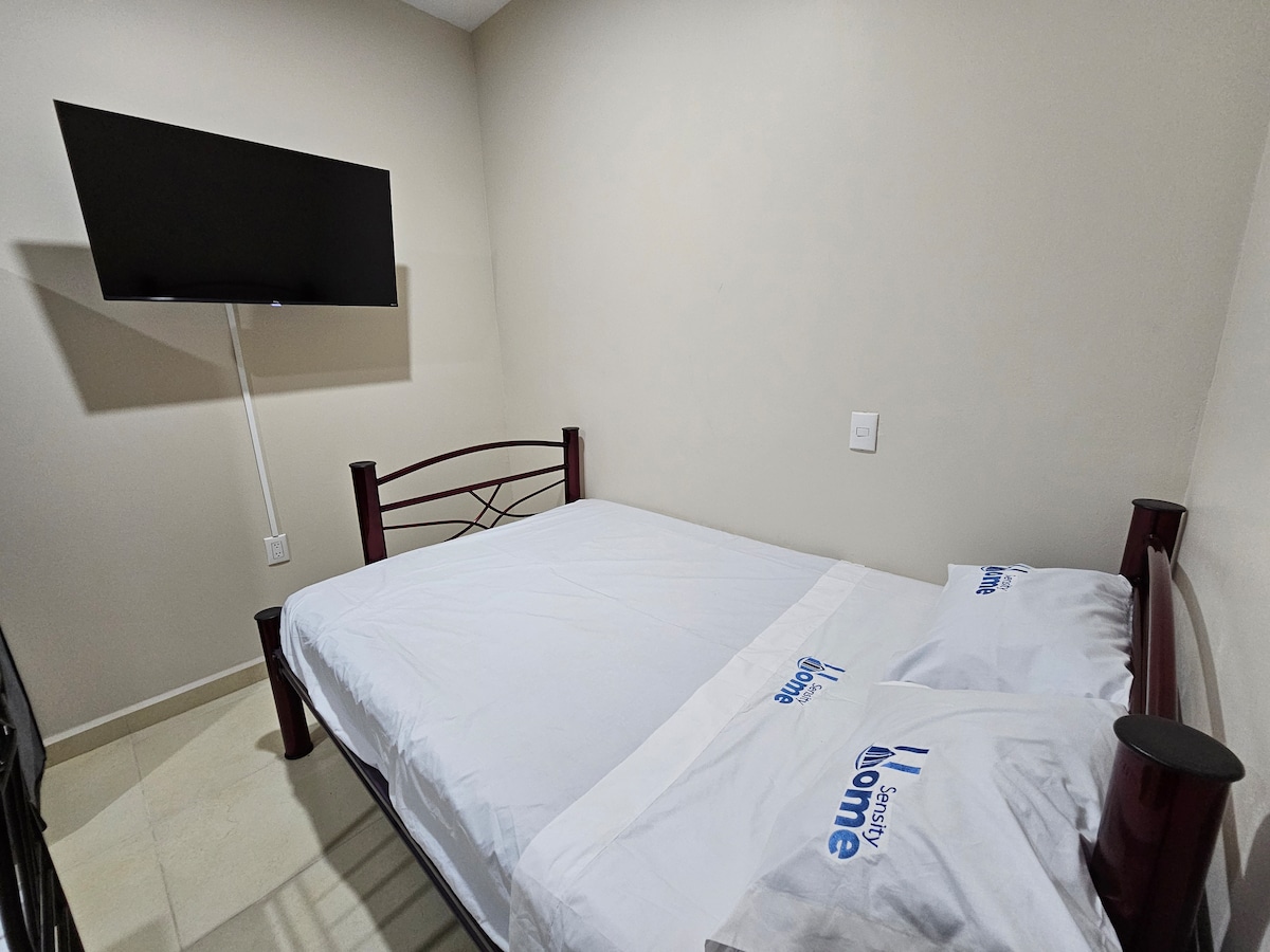 Este acogedor departamento destaca por su ambiente moderno y funcional. La habitación principal ofrece una cama Queen con ropa de cama para garantizar tu descanso. La sala está equipada con un sofá cama y un televisor de 42" ideal para relajarte. La cocina completamente equipada, junto al comedor iluminado y decorado con colores cálidos, invita a disfrutar de comidas caseras. Su diseño combina comodidad y estilo, convirtiéndolo en un espacio perfecto para parejas o familias pequeñas.