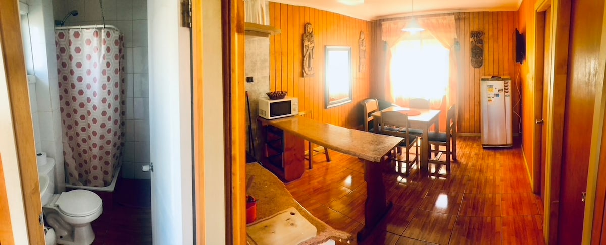 Departamento para 1 o 2 personas ubicado en Barrio Residencial en Isla Teja, a minutos caminando al Centro de la ciudad y principales centros turísticos, solo a 15 minutos en automóvil a la costa, a un paso de Supermercado, Restaurantes, Cafeterías, Panaderías, Museos, Jardín Botánico, UACH.
