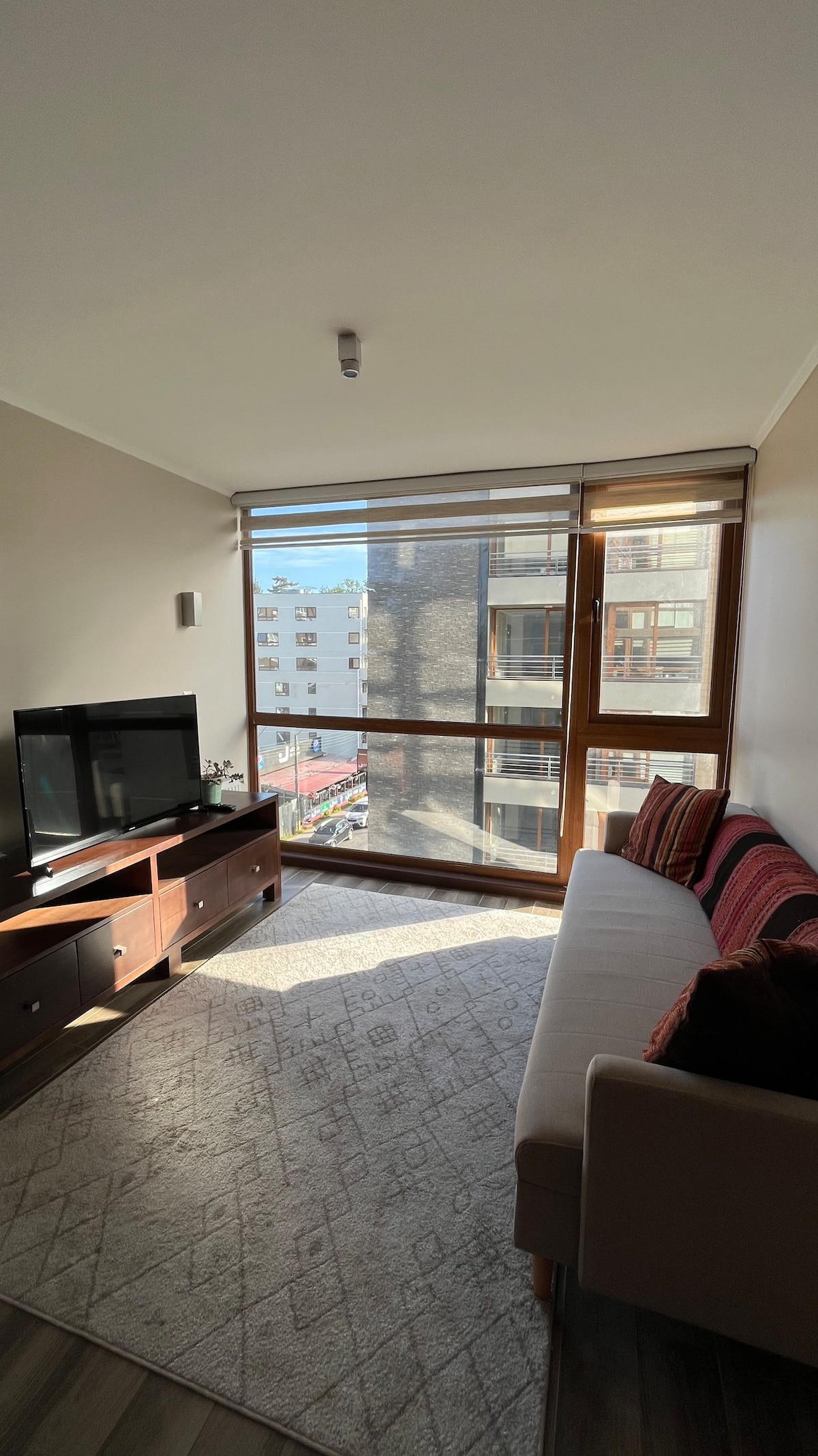 Disfruta de la comodidad y estilo en este departamento full equipado, ubicado estratégicamente con acceso a Av. Picarte y Costanera, a solo minutos del centro de Valdivia. - Living comedor. - Cocina full equipada: horno eléctrico, campana, microondas, lavavajillas, refrigerador, hervidor, tostador, cafetera y licuadora. - Baño con termo eléctrico, plancha, secador de pelo y toallas. - Dormitorio con cama de dos plazas. - Terraza. - Wifi 800mbps - Estacionamiento techado al interior del edificio.