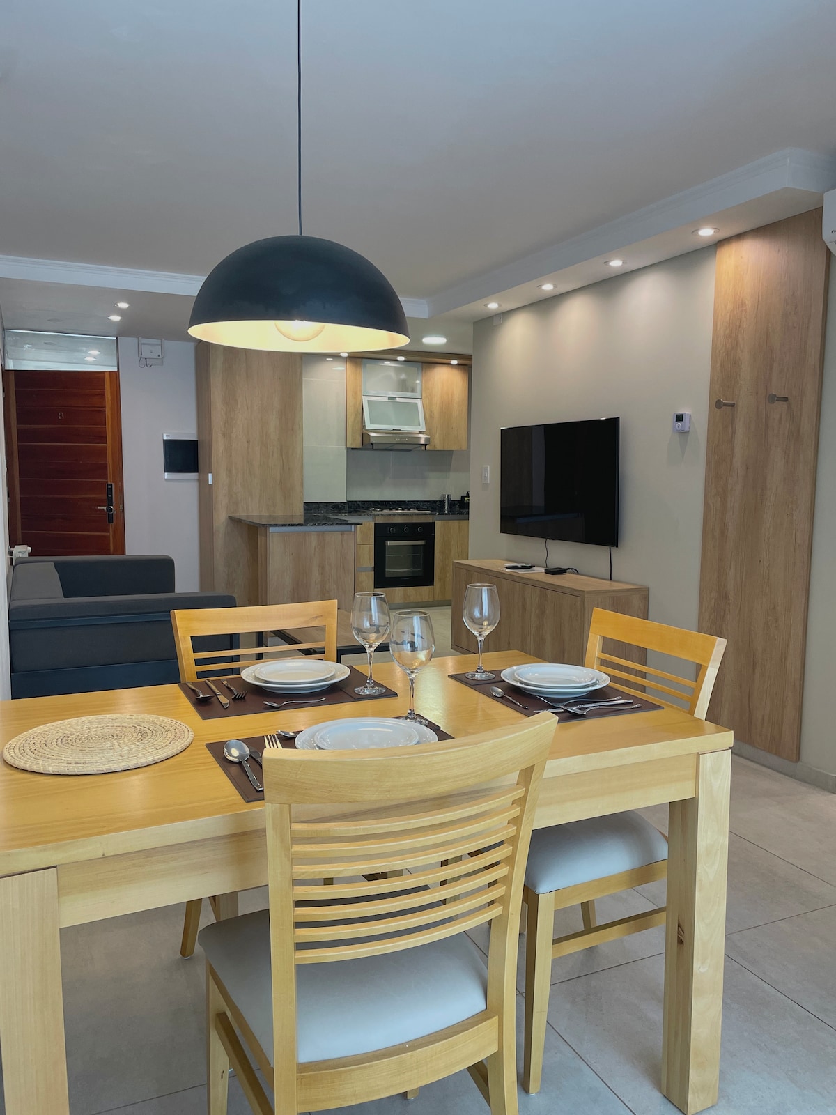 Brand new apartment with pool, gym, SUM and terrace with grills in the heart of Nueva Córdoba! With all the comforts so that you have an excellent stay. Equipped kitchen, coffee maker, toaster, washing machine, smart TV, wifi, air conditioning, heating. Bedding included (the stay includes 1 bath towel per person and 1 hand towel per group).