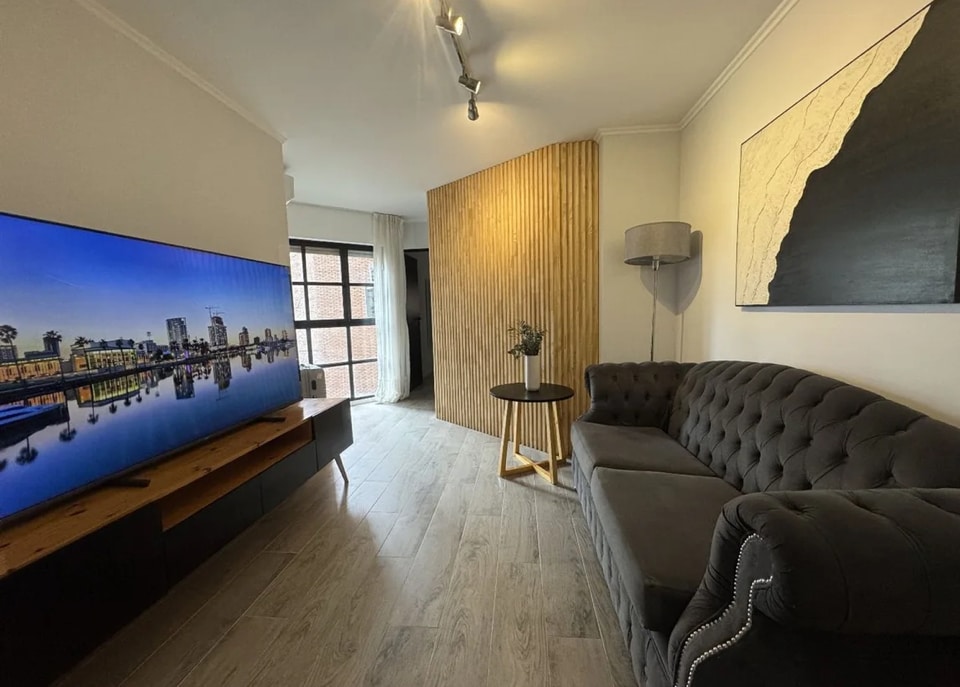 Relajate en este alojamiento único, nuevo y tranquilo con todas las comodidades para descansar o trabajar. Wifi 100Mb y Flow, SmartTv en dormitorio y living, cerradura digital de acceso puerta del depto. Centro de manzana. Muy luminoso. AA frio calor en living y dormitorio. Lavarropas, heladera, microndas, cafetera, secador de pelo, , cama matrimonial en dormitorio y sofá cama doble en living, escritorio ce trabajo, detector de monóxido.