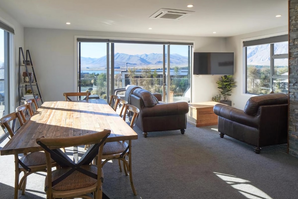 Enjoy this fully self-contained apartment (50㎡ + deck) with breathtaking views of Lake Tekapo and the surrounding mountains. Perfect for a couple, it features a king bedroom separate from the open-plan kitchen and dining area. The space is ideally suited for two, but we’re happy to accommodate a third guest using the sofa bed in the living room. Just a 5-minute walk from the Church of the Good Shepherd and a 10-minute stroll to the village centre. WiFi, Netflix, and a free car park are included.