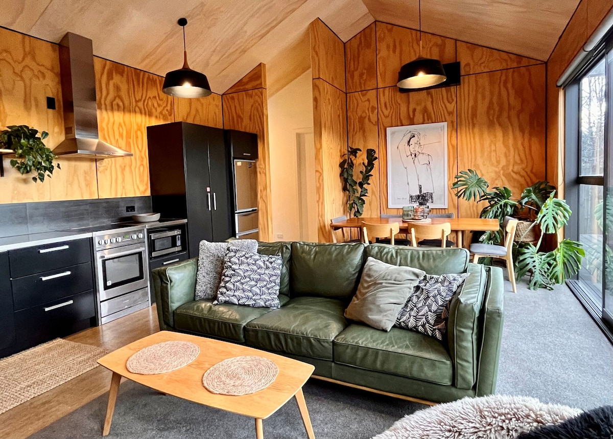 Stay in this beautiful, luxurious two-bedroom chalet-style home on the outskirts of Twizel — winner of the Luxury Holiday Home Award 2025. With breathtaking, uninterrupted views of the Ben Ohau mountain range, Antlers Rest has been furnished and decorated to the highest standard. The modern yet rustic interior creates a warm & welcoming atmosphere from the moment you step inside. The open-plan living area is air-conditioned and offers both a heat pump & a log burner, ensuring year-round comfort.