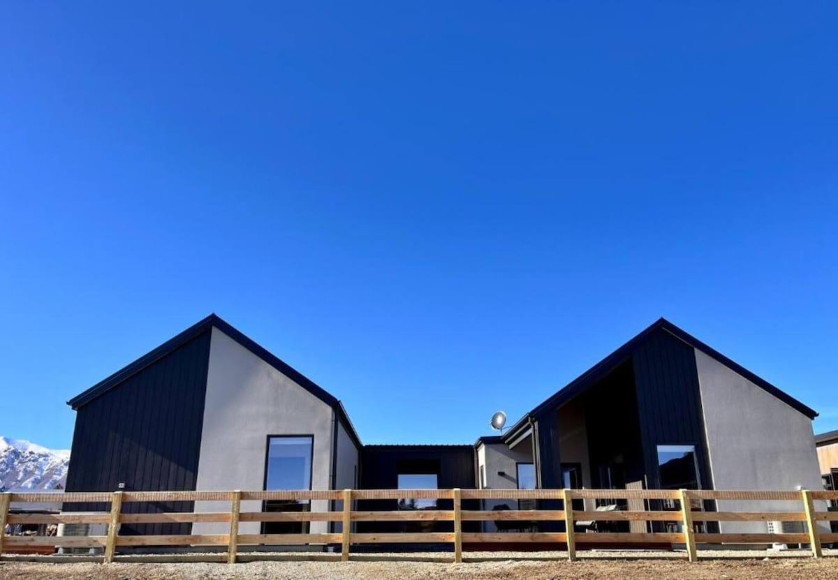 Enjoy stunning mountain and lake views from a new modern villa in Lake Tekapo. One of two villas situated within a large property, the house is private and peaceful. • Large windows and balcony to maximise the view of the mountains & stars • Fully equipped kitchen with gas stove • Oversized smart TV with Netflix & Neon • Onsite washer & dryer • Ample onsite parking • Plenty of green space - Three minute walk to cafes, restaurants, bars - Five minute walk to lake and church
