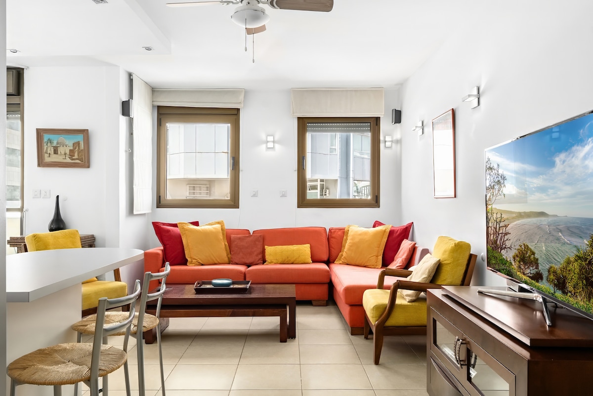 Beautiful new apt. in renovated historical eclectic building, which has a private synagogue for tenants. the apt. Located five minutes from trendy Shabazi Street in charming Neve Tzedek, few minutes to Rothchild Blvd. and Carmel market. you’re within walking distance to Tel Aviv’s most popular spots for shopping and eating. The apartment is fully equipped with all necessary equipment and attention to details, TV and closet in each room, and "Mamad", comfortable kitchen and modern design.