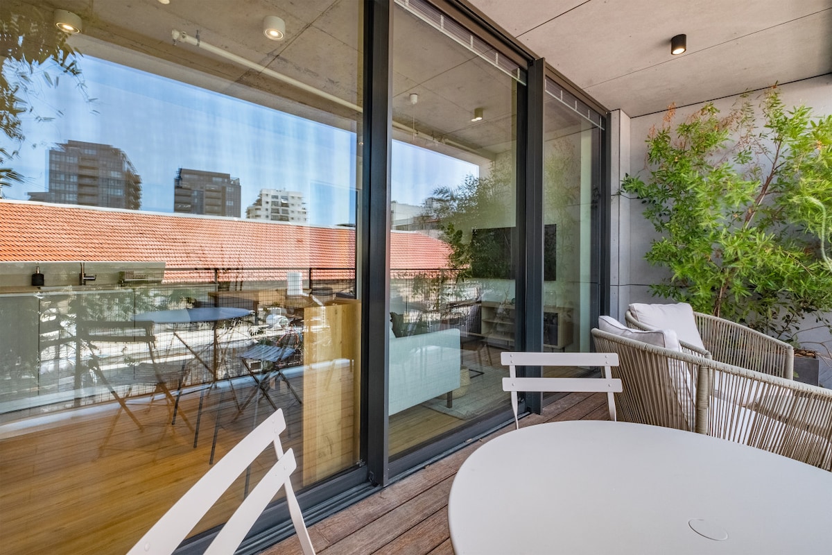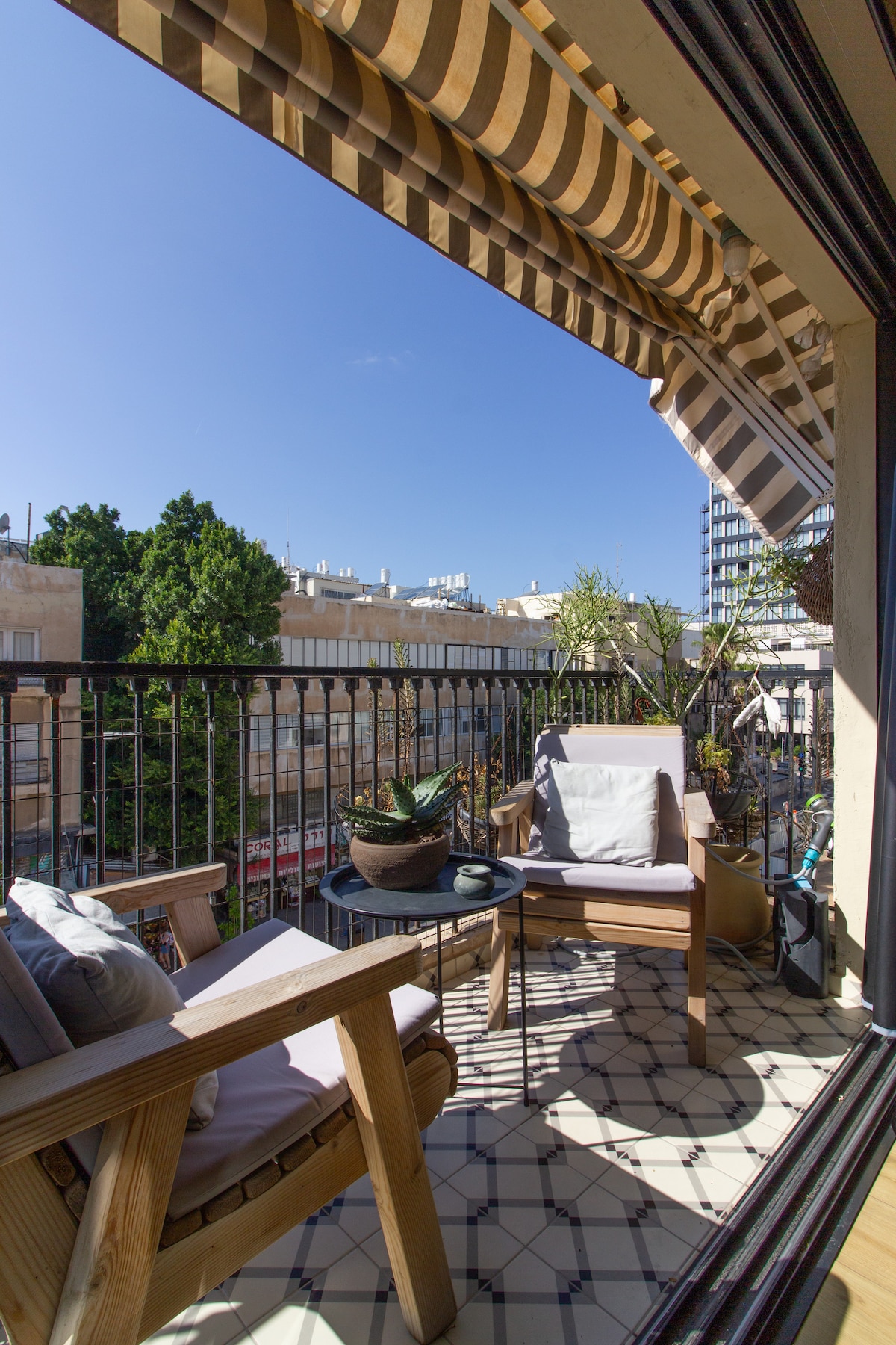 A newly renovated 2 bedroom gallery apartment in a historic restored building “Beit Ne’eman” (1920). The apartment is tucked away in a quiet pedestrian street (no cars allowed) right in the heart of Tel Aviv (also known as the UNESCO White City).