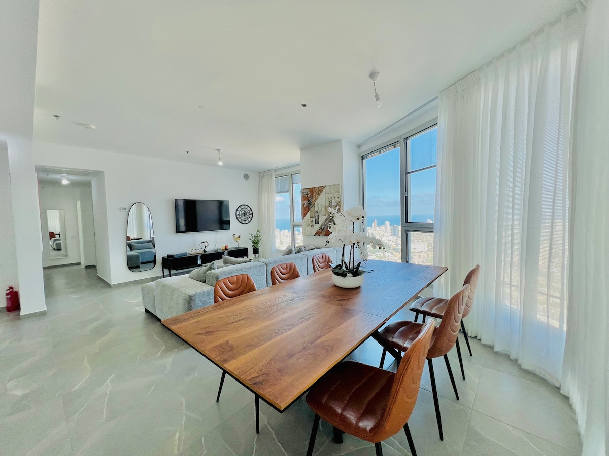 豪华TLV海景和城市景观3卧/3卫~露台-Sarona