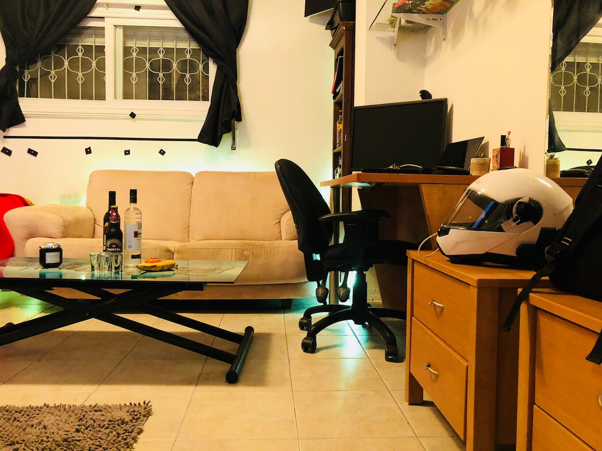 Cozy little apartment in the Center of Tel Aviv, Cozy sofa, cozy workspace, useful kitchen with everything and Smart TV with Netflix -4K The thing that I love its can become fully dark- for people that like to sleep and wake up without knowing what is the time.. :) Also it’s located on the ground floor- so no need to climb stairs in the heat and humidity:) A disadvantage during the weekdays is that there are buses and noises from construction of the new metro across all Tel Aviv