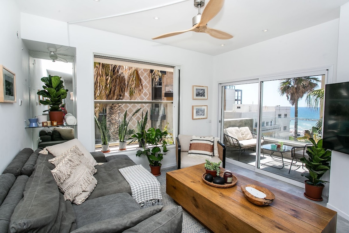 Welcome to the amazing holiday apartment which is located in the center of the Tel Aviv beaches In front of Gordon Beach and near the Sheraton Hotel You will not find a better location than this! The popular beach is full of surfers, colorful boats and people playing on the beach All this is synchronized with a breathtaking view of the sea and the Sheraton pool. The apartment is on the third floor without an elevator