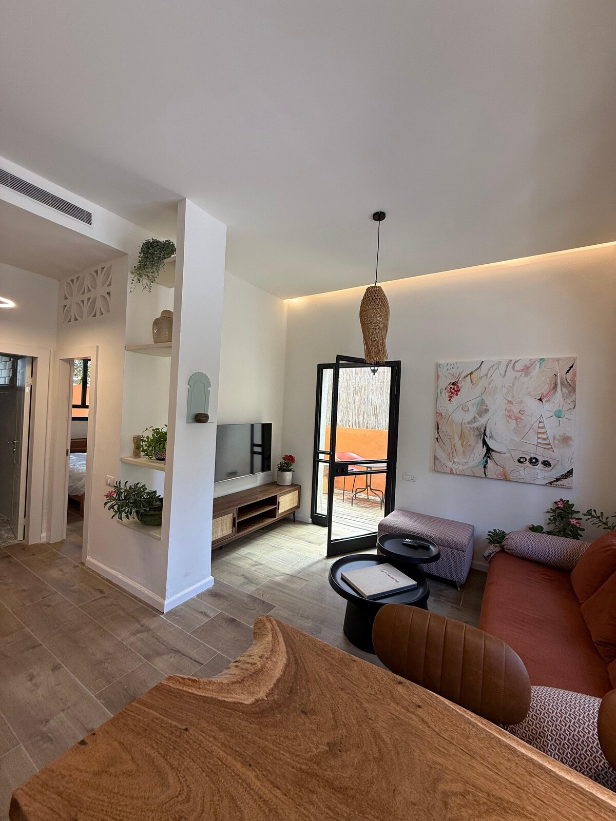 Enjoy our newly designed 2BR apartment in Jaffa, right where Jaffa meets Tel Aviv, just a 2-minute walk to the beach and a short stroll to the Flea Market and local hotspots. The apartment is fully equipped, featuring a master bedroom, a second bedroom with two single beds, a sofa bed in the lounge, a large smart TV, and a cozy balcony. Perfect for families, the apartment sits directly opposite a playground and includes plenty of kids’ amenities such as a baby cot, high chair, and more.