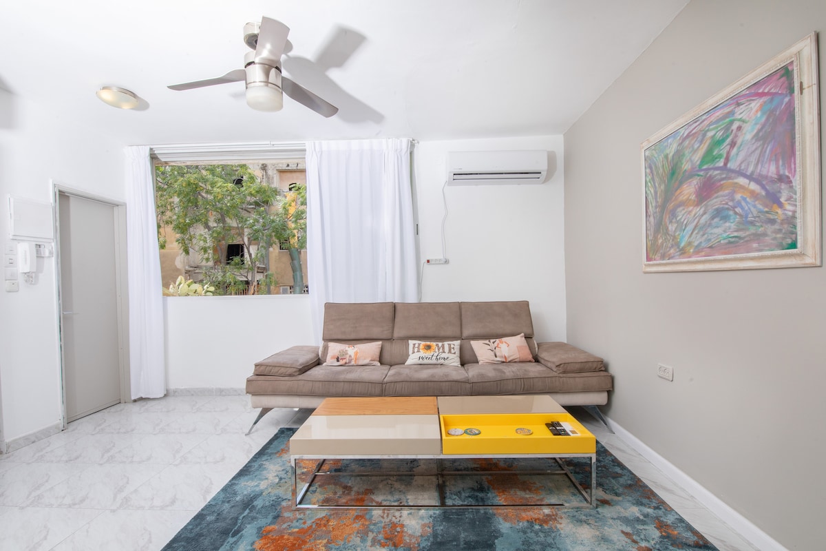 " There is a dimension inside the apartment. " Enjoy a prime location designed to fit all your needs- kitchen, living room, huge bedroom, new shower, and street parking. This 1-bedroom apartment is just 2 min walk from the vivid Flea market and 5 min walk from the beach. This is a great opportunity to stay at the heart of Jaffa and be close to all the hot spots of the area! Less than 10 min drive from the center of Tel Aviv and will be able to enjoy both old Jaffa and amazing TLV.