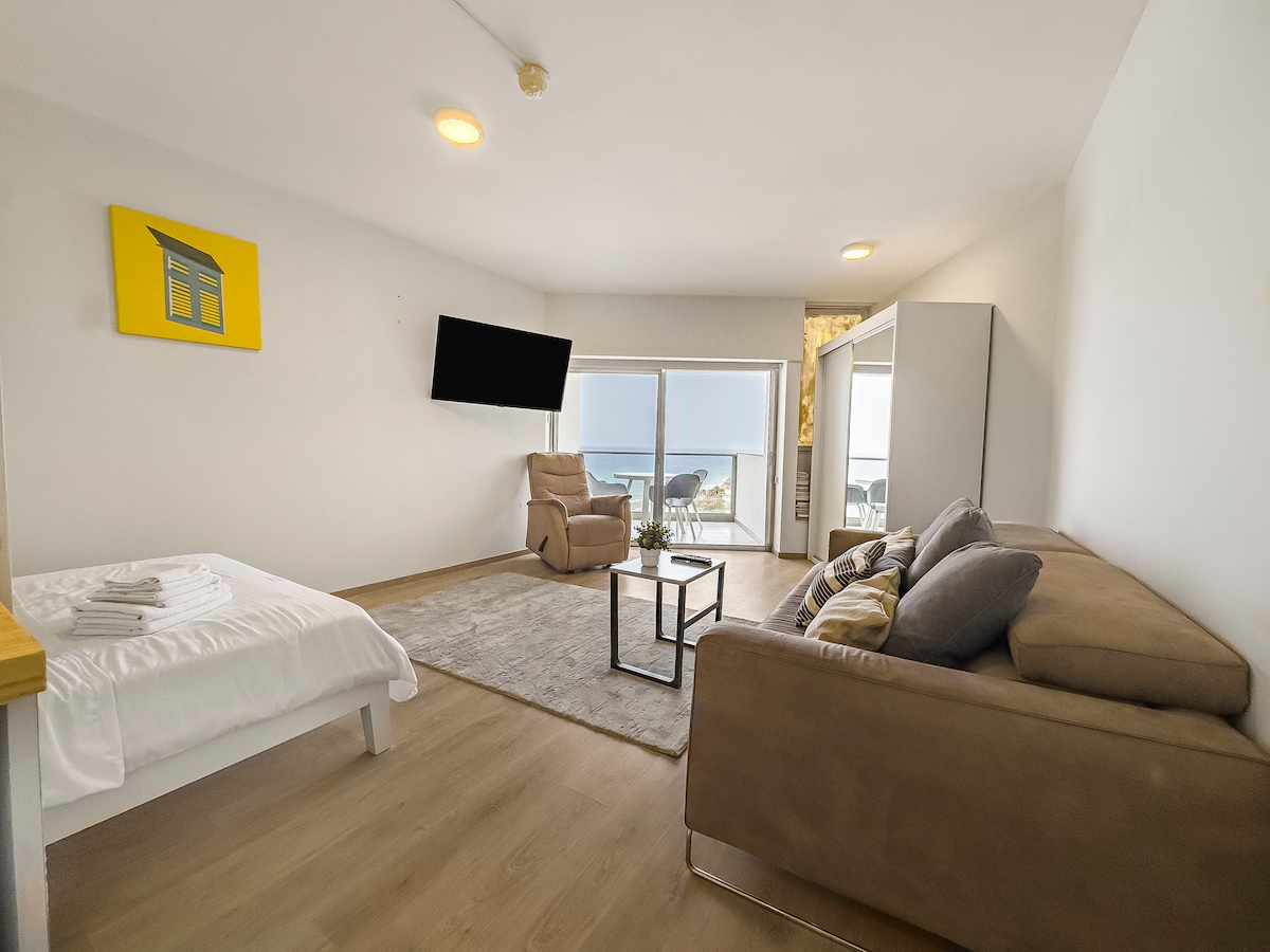 Welcome to our unique 2-bedroom apartment with a sea view balcony, steps from the beautiful beach in a one-of-a-kind hotel. Enjoy modern comforts, including a fully equipped kitchen for home-cooked meals and a cozy living area with stunning beach views—perfect for relaxing with a book or movie. Important: Israeli citizens are subject to an 18% VAT. (ישנו תשלום מע"מ לישראלים)