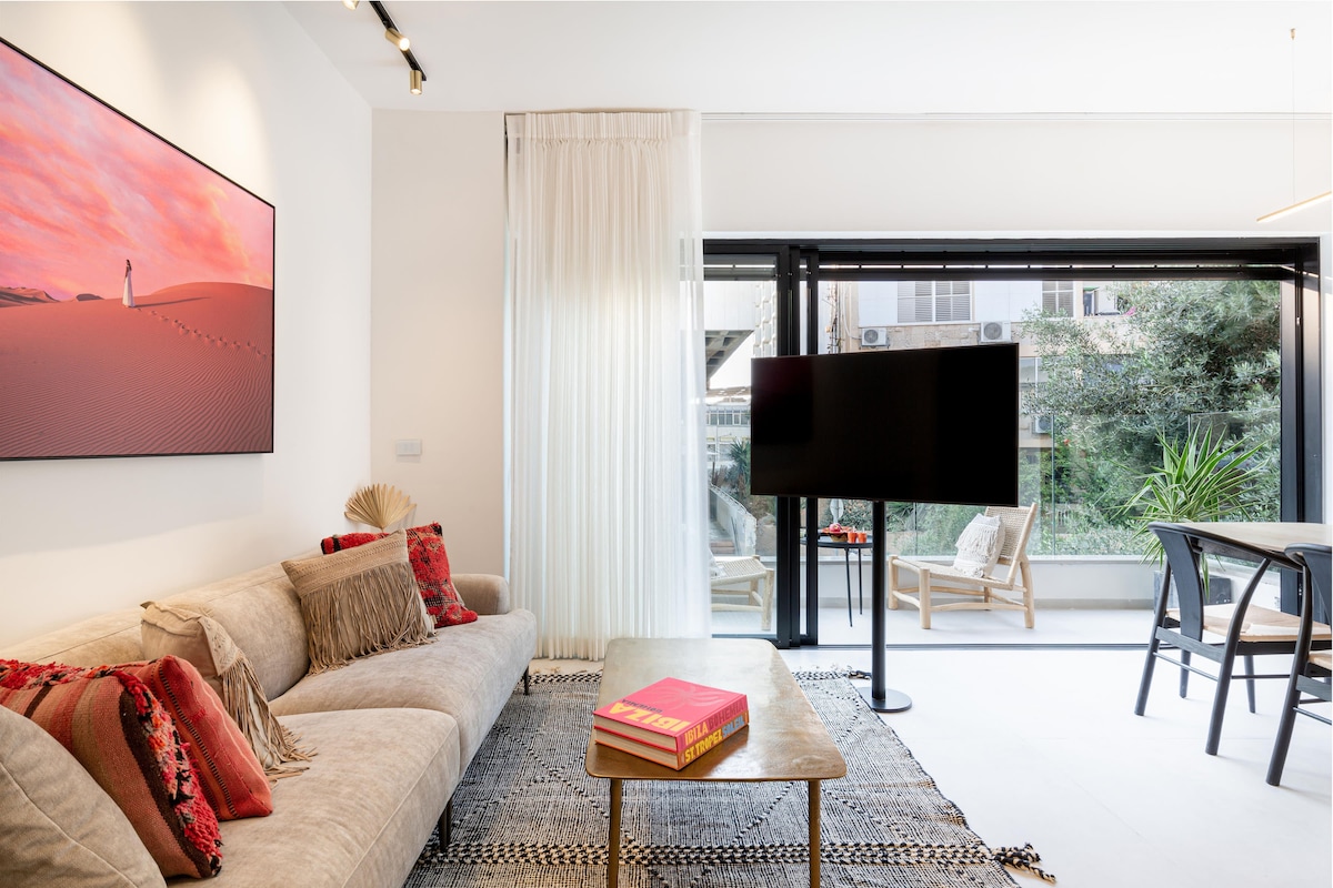 Glimpse Tel Aviv history from the balcony, in the shape of the serene landmark of Trumpeldor Cemetery, final resting place of some well-known Israelis. Garden views abound as well, and there are many objets d'art by local artists and designers.