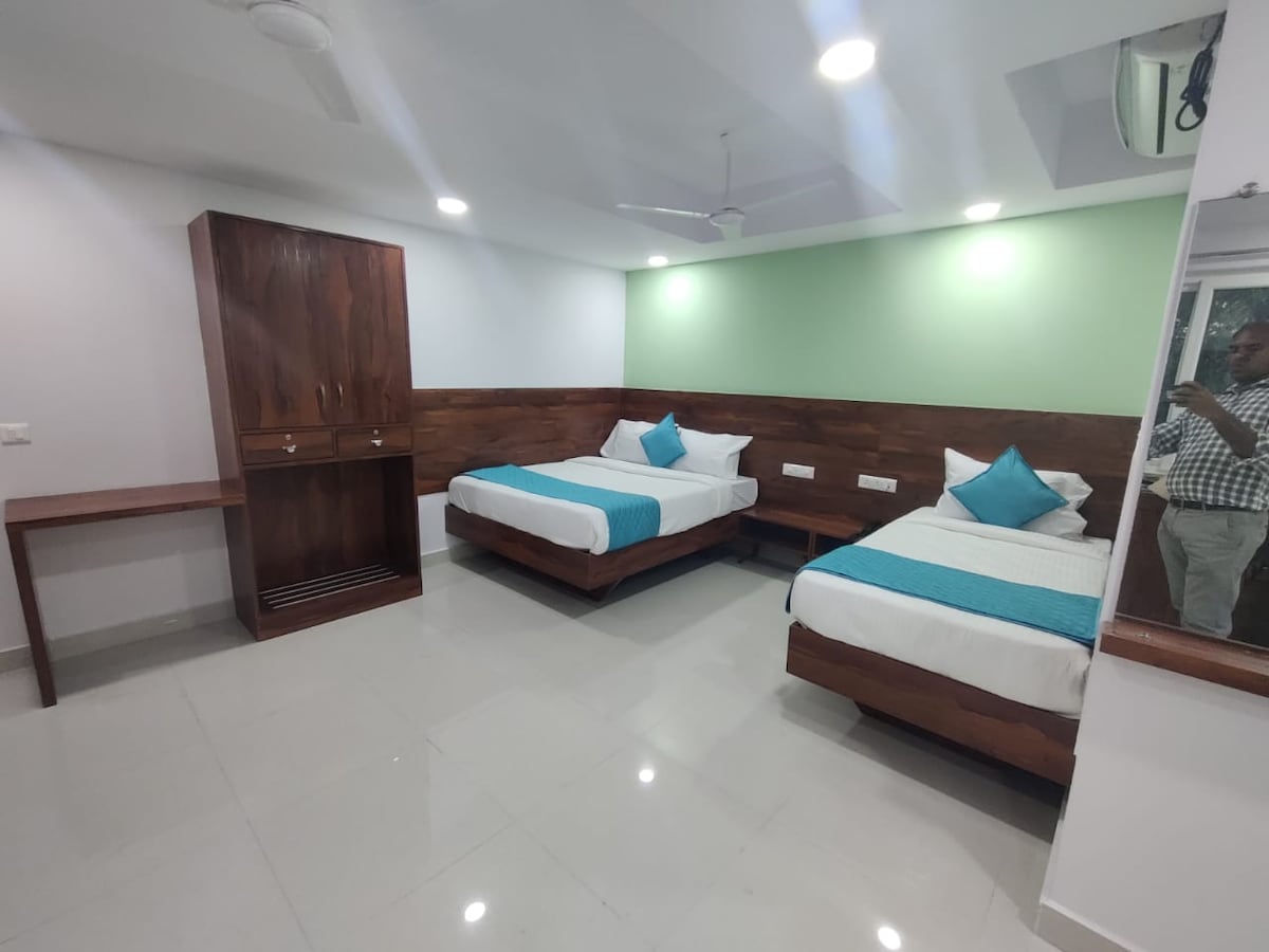 Check In Time From Today 12 Noon Check Out Time Till Tomorrow 12Noon Extra Charges are applicable on late checkouts. We are happy to host you at our place with economy rooms without disturbance can have get together, solo travellers , corporate guest and many more With amazing In house kitchen will serve multi cuisine menu food will serve directly to rooms very close to inorbit mall , durgamcheervu and many other places as well.