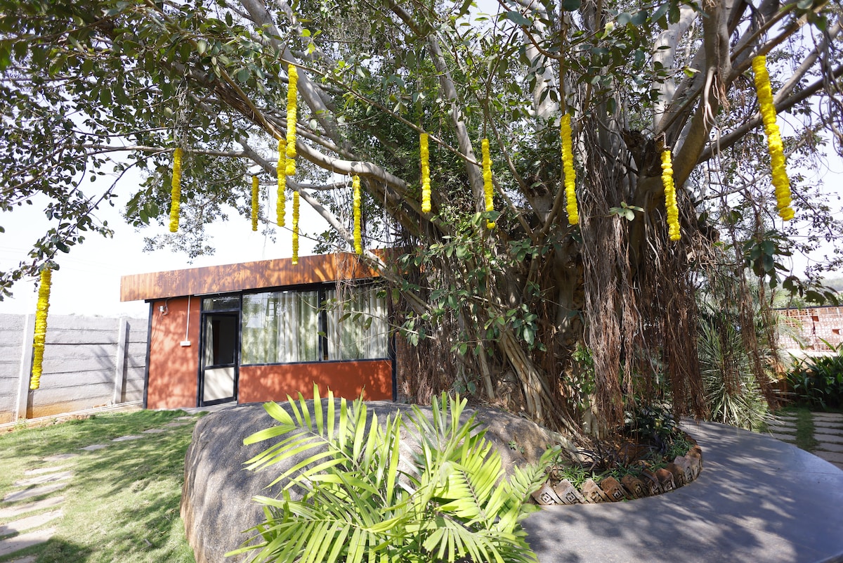 Areca FarmStay - entire 2 cottages in a 1000 sq yd plot for familes upto 5 to 6 guest occupancy. A perfect stress buster where you can escape the city hustle bustle & unwind. Charming stay offers touch of nature that You won’t forget. The peaceful surroundings of this rustic destination will surely create memories. You can enjoy fresh food from our on-site cafeteria making your stay comfortable & convenient
