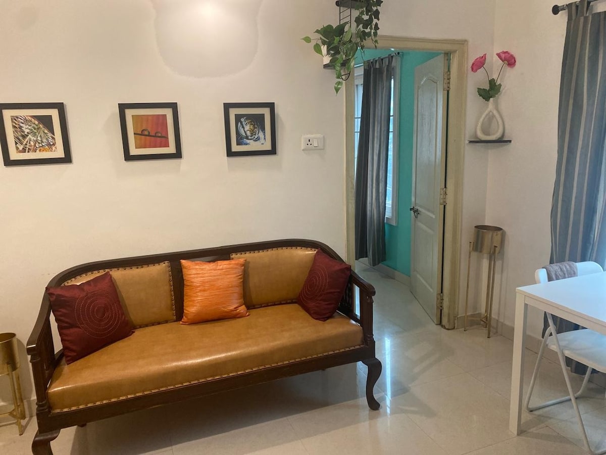 Welcome to your ideal home away from home. Our apartment is on the first floor of the villa without a lift, exclusively for the families only. Unmarried couples and Bachelors are restricted. Our apartment is spacious. A/C in both the bedrooms, with attached bathrooms. Featuring two spacious bedrooms, our retreat ensures a peaceful night's sleep . The master bedroom is with a king-size bed, while the second bedroom is with a queen-size bed, and two additional floor mattresses.