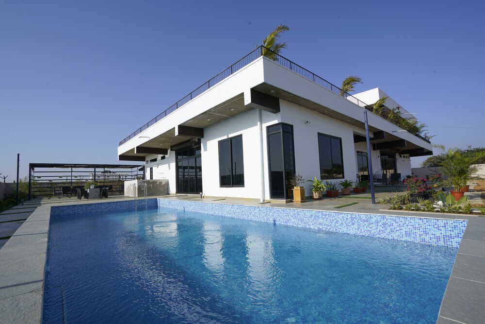 A PRIVATE RESORT STAY EXPERIENCE! Reconnect with nature at this unforgettable escape. A serene and homely 5000 sq ft villa with a swimming pool, lawn and children's play area nestled in an 8 acre mango farm. We take reservations for family stays, parties, events, weekend getaways, movie shootings, etc. Outside food is prohibited.