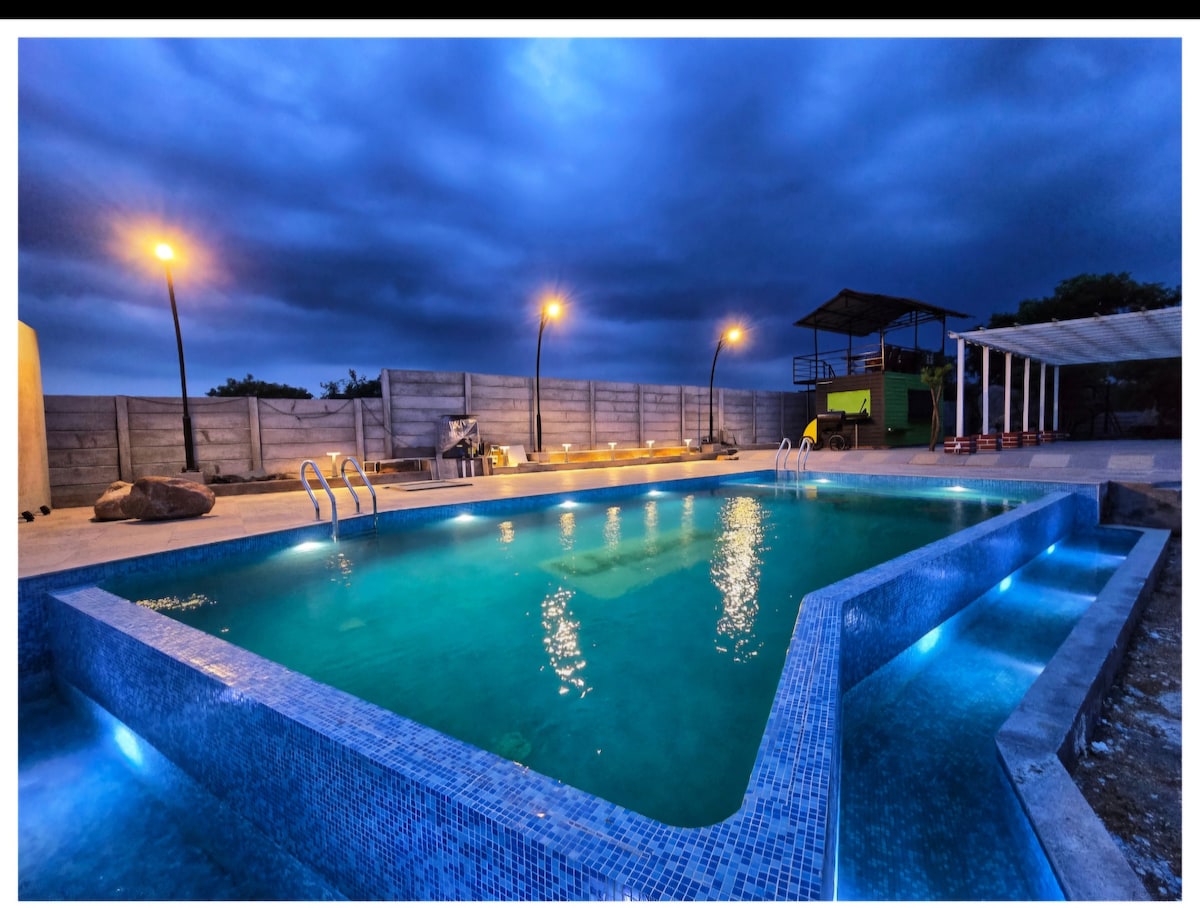 Wake up to lake views, fresh air, and peaceful surroundings in this spacious 4-acre farm retreat. With an infinity pool, outdoor dining, BBQ setup, and open lawns, it’s a perfect blend of nature, comfort, and togetherness with Unwind Farm Retreat. Perfect for families, groups, and celebrations who want space, privacy, and a soothing getaway close to the city.