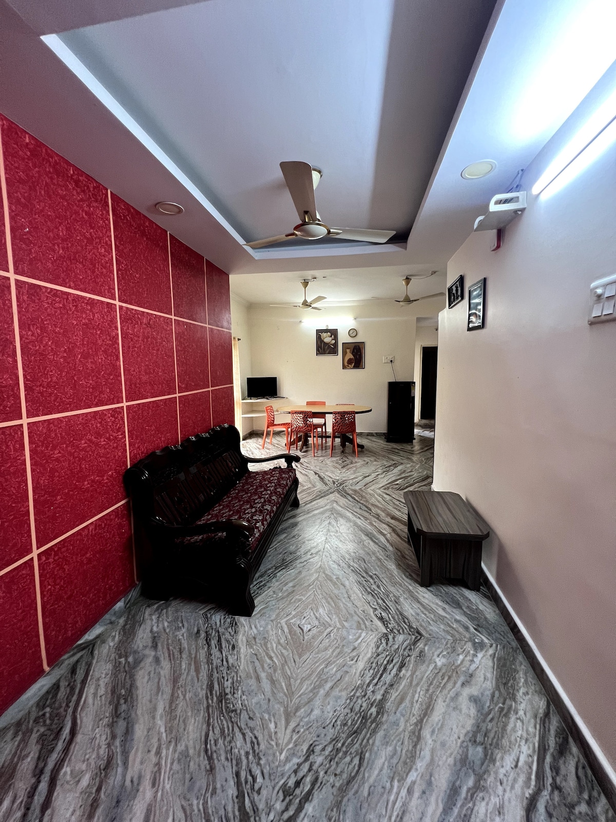 Forget your worries in this spacious and serene space nestled in the heart of the city of Hyderabad, MLA Colony, Banjarahills. Our scenic 3 BHK(AC) apartment offers the perfect blend of convenience and tranquility. Located in a calm neighborhood, away from traffic/pollution it’s just minutes away from popular malls, shopping centers, hotels and hospitals. With all the basic amenities it ensures a comfortable stay for your family. Whether you're here for work or leisure, you'll feel right at home