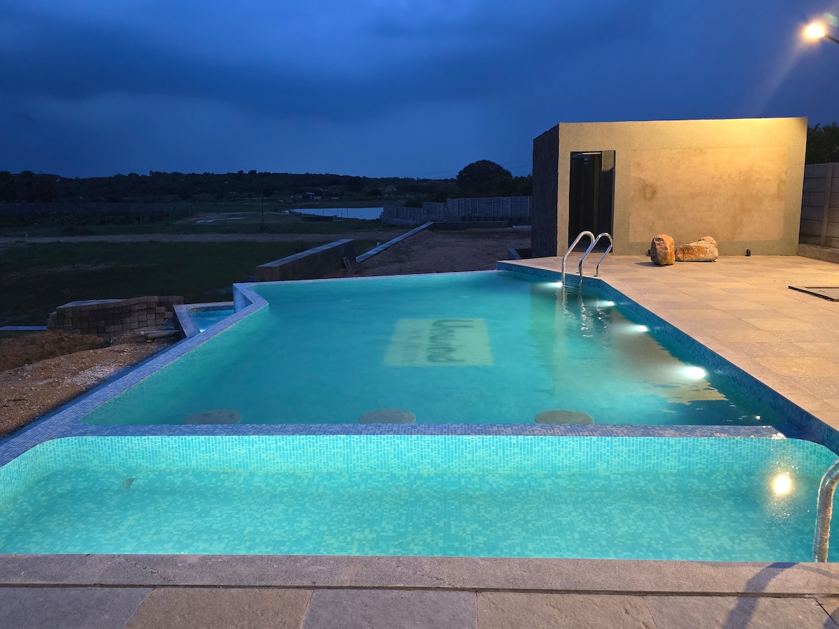 Bliss by GORLE is perfect place for happiness where you can spend with your family and friends in nature with luxury ambiance. can accommodate around 8- 10 people. can have kind of camping experience. BBQ setup is available. Beautiful pool of size 26*10 ft with Jacuzzi 2 seater (NO COUNTER CURRENT INSTALLED ITS JUST FOR DEMO), have good sit out areas with canopy and outdoor audio music. Food guest can order/ pickup from near by hotels & dabas we have 2-3 contacts can check with them delivery