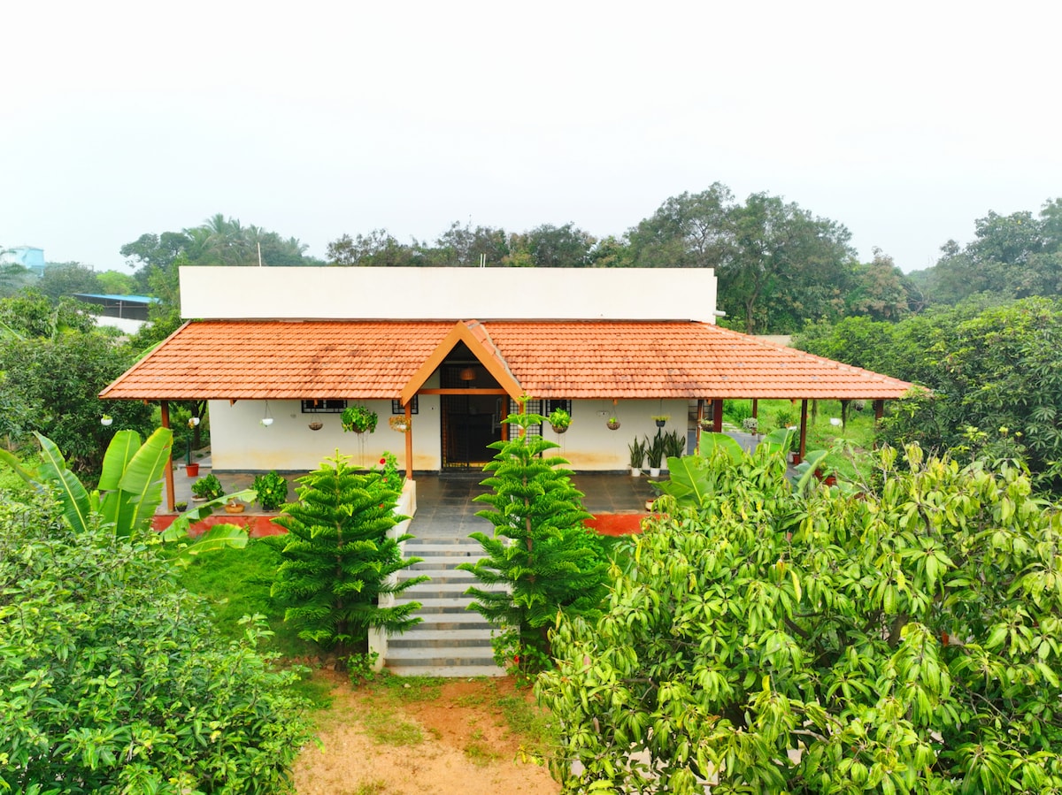 Spend your getaway at our exclusive farmhouse nestled amidst lush green gardens and mango plantations spread on a quarter acre private property. Experience a unique stay in a charming wooden cottage designed to transport you back in time with its handpicked interiors. Serene private property that's just 30-40 min drive away from Hitech City, Gachibowli and other prime areas with all the amenities you need. Step into the beauty of nature and create lasting memories with your loved ones.