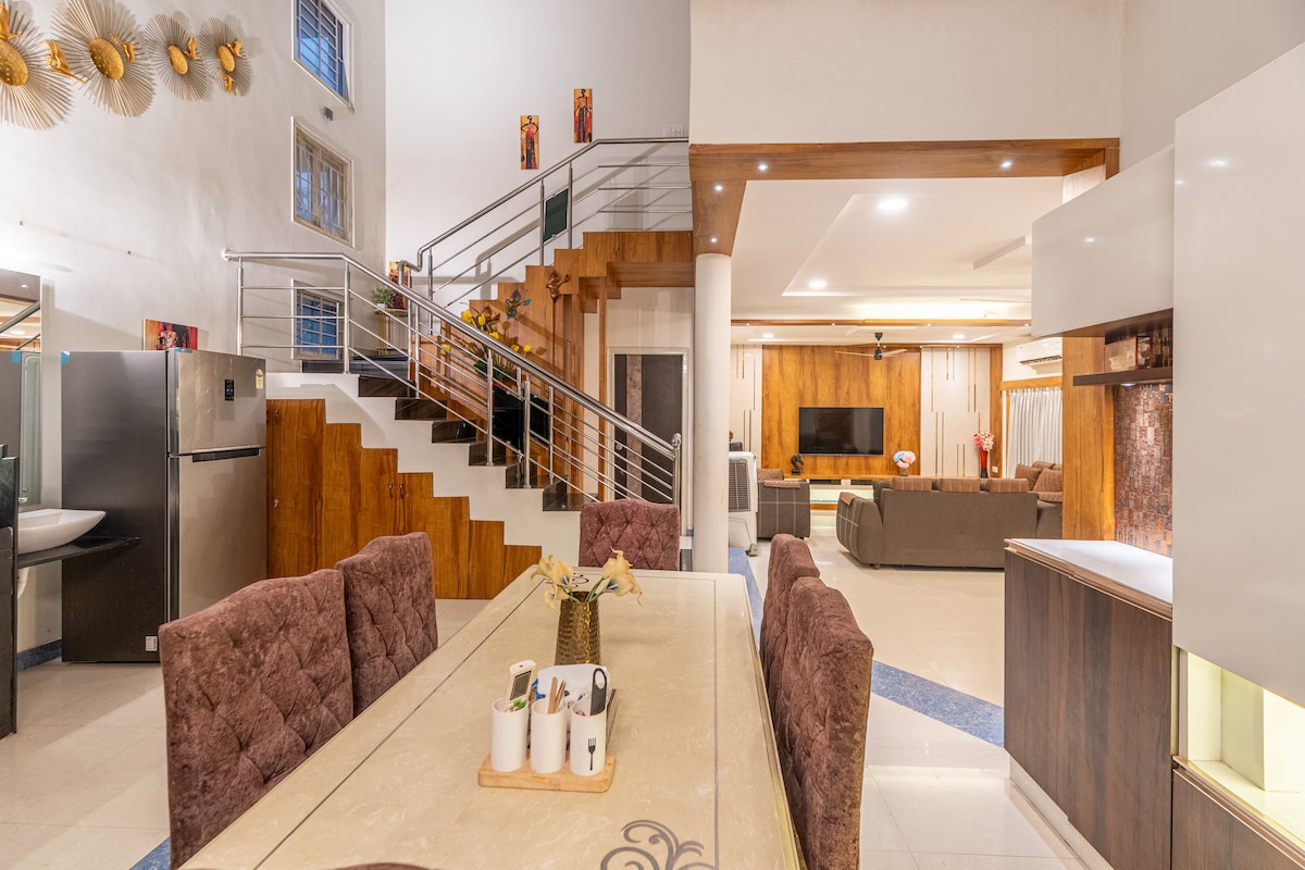 Relax with your family or colleagues in this peaceful and luxurious airport-side villa. Enjoy a spacious G+2 home featuring a stylish living room, a fully equipped modern kitchen, and beautifully designed 4 bedrooms—each with AC. Just 20 minutes from the airport near Tukkuguda, this villa is ideal for families, business travellers, and long stays. Fast Wi-Fi. Guests will have access to the entire villa for complete privacy during their stay. The entire villa is exclusively for your group.
