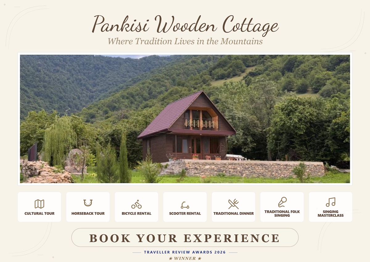 Welcome to the Pankisi Wooden Cottage! Your perfect nature escape in the heart of Pankisi Gorge. Here, you’ll find: A peaceful and comfortable environment with stunning views; The cottage is fully equipped with all the essentials for living and household appliances; Ideal for families, friends, or small groups; Discover the rich local culture of the Kist community and village life! Spend time in nature and enjoy the pleasant surroundings!