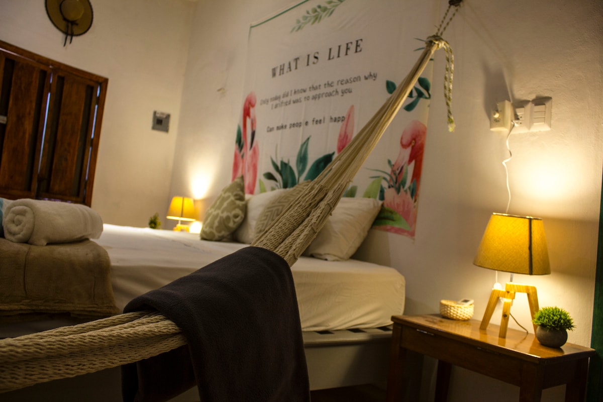 Casa María is ideal for those seeking a private and relaxing atmosphere away from the city’s noise, just three blocks from the Telchac sea and a short distance from the town center, restaurants, bars, and beach clubs. What makes this place unique in the area are its private spaces, which include a pool, jacuzzi, bar, grill, hammock, outdoor shower, reading area, and a rooftop with an ocean view. Additionally, it features a bedroom with a closet, a kitchen, and a full bathroom.
