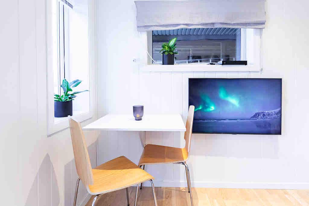 Looking for a magical, romantic escape? This modern and cozy studio offers an unforgettable view of the Aurora, away from city lights. Just step outside to your private floating quay for a pristine, unobstructed Aurora experience. Everything you need for a perfect night outdoors is included. Rent a private sauna with access to the quay for a refreshing dip in the polar waters—perfect for photo moments! Just 12 minutes from the airport, your space is private and faces a quiet parking area.