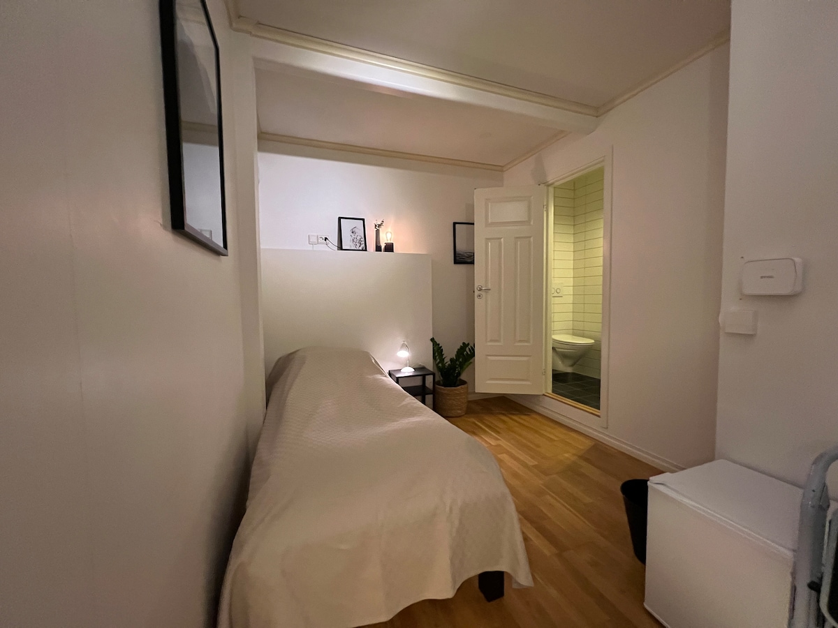 All inclusive. towel etc. Fresh, cold drinking water from the tap. 1 min to bus stop. 5 min bus to the city centre. 15 minute walk to the city centre. By agreement and fee of 300 NOK possibility to use sauna with snow bath. One double bed 120 meters wide and the other 140. For bookings after 24.11.25. A free bacalao meal or one fish cake meal for free, if desired, for stays over three days.