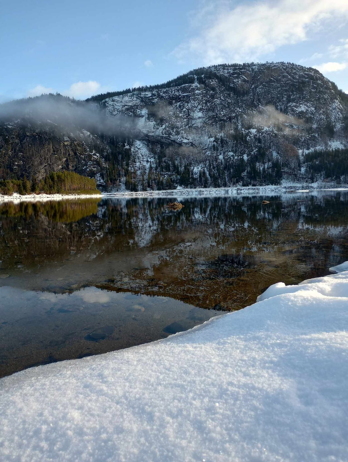 Cosy cabin with a fantastic location and its own shoreline by Lake Totak. The cottage has 2 bedrooms, a spacious living room with a corner sofa (can also be used as a sofa bed if needed), a cosy fireplace, a large dining table, a loft, a well-equipped kitchen and a bathroom with a shower and washing machine. Large terrace with a dining table and a view of the lake and the mountains. We have our own marina, boat ramp and a boat, 2 kayaks and 2 SUPs that can be rented. 15 min to the ski centre.