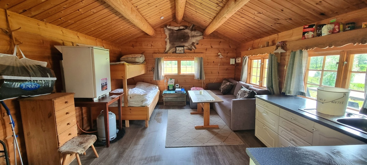 Renovated loggercabin. Well equipped 10 m from the beach, Calm surroundings,. Nice short hikes in the pinewood behind the cabin Gas for hot water, shower and cooking. Lights are solarpowered Also usb charger inside. Fireplace for wood, in livingroom if it should become chilly. Fireplace outside for barbeque Acording to former guests, its wery good conditions for SUP boarding here.