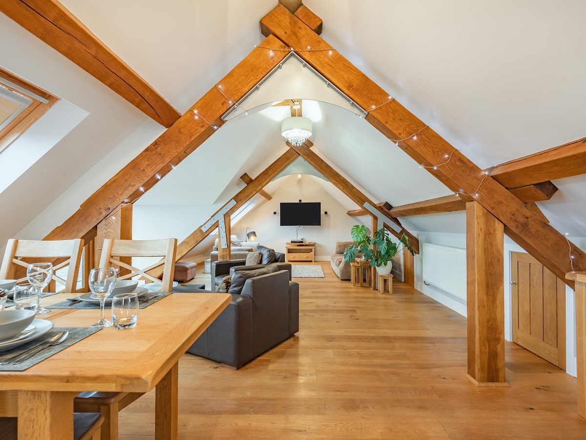 Suitable for 2 adults, 2 small children. The Loft at the Timbers is an open-plan, modern loft hideaway in the heart of the Shropshire countryside. Set in the grounds of a 17th century cottage. The Loft is self-contained and offers lovely country walks and bike rides straight from its village location, as well as good transport links for Shropshire and Wales The World Heritage Site of Ironbridge is a couple of miles away and there are plenty of lovely cosy pubs for dining out