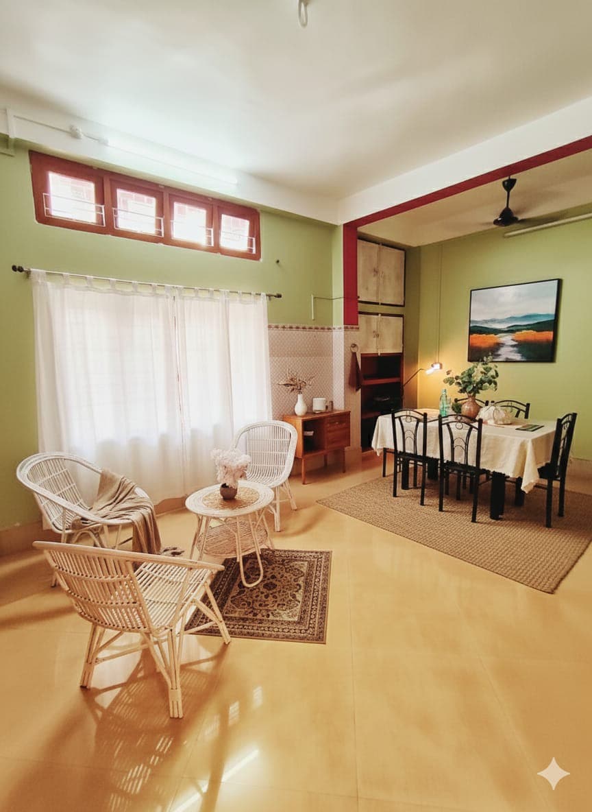The Green Nook - Premium is a peaceful 2BHK homestay offering a private bathroom, kitchen, dining area, and a spacious hall. Located in a serene yet central area, it combines comfort with convenience. The cozy setup, essential amenities like AC in primary bedroom (additional charge) and a tranquil surroundings make it ideal for relaxation or work. Despite its quiet ambiance, it’s close to key attractions, markets, and restaurants. Perfect for families, couples, or solo travellers.