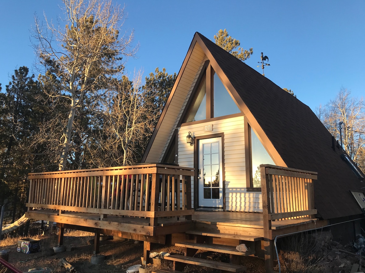 Breathe in the fresh mountain air at this charming A-frame with a 7 person hot tub, outdoor fire pit, Pac-Man machine, and grill. This quiet retreat has 3 bedrooms & sits of 4 acres, surrounded by pine trees. There are many hiking trails, lakes, and streams nearby. You’re just a short drive from Manitou Springs, Woodland Park, gambling in Cripple Creek, Pikes Peak, and the Garden of the Gods. Step out on the deck and see what wildlife you can find! The memories to be made here are endless.