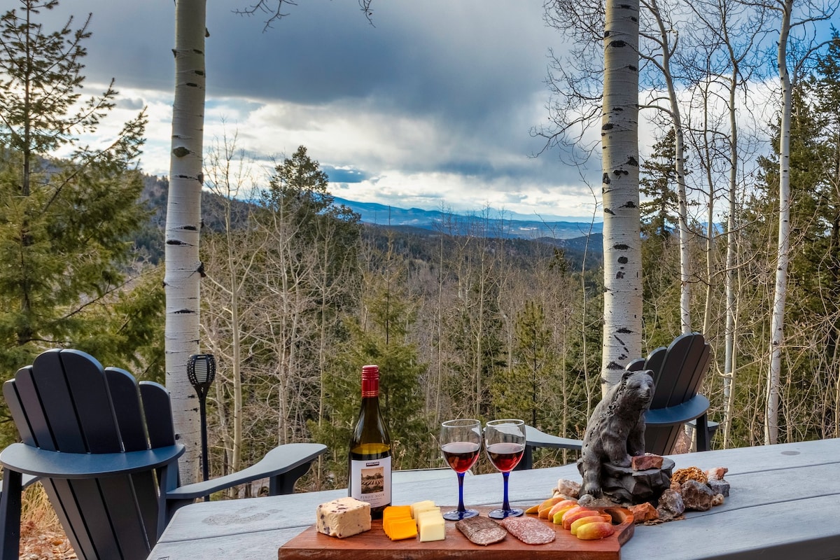 派克峰(Pikes Peak)上的小木屋,热水浴缸,步行可到葡萄酒 + 美食