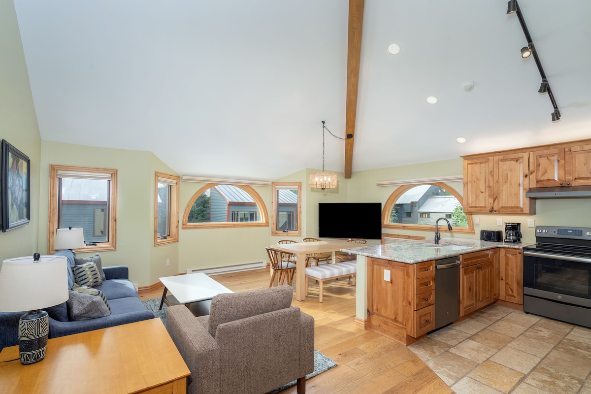 Escape to Sunset Retreat, a cozy, stylish Telluride getaway. This one-bedroom condo features a king bed, full kitchen, in-unit laundry, and a private patio with BBQ. Relax in the shared hot tub or enjoy walkable access to downtown shops, restaurants, and the free gondola. Perfect for couples or adventurers seeking comfort, mountain views, and easy access to skiing, hiking, and all the beauty Telluride offers.