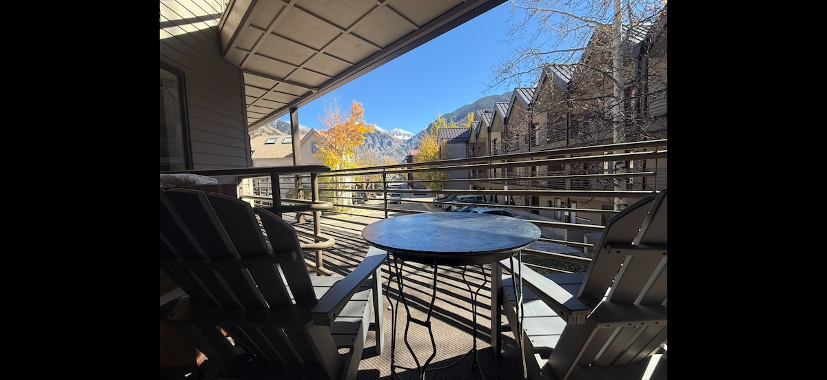 Sunny second floor (penthouse) one-bedroom historic main street condo with deck just steps away from restaurants, cafés, shops, skiing, hiking, and much more! This turn-of-the-century condo offers a comfortable and stylish retreat, ideal for couples looking to explore the charm of downtown Telluride and its many activities. As long-time locals of over 30 years who have had to relocate due to family health issues, we are excited to share our condo with fellow travelers who love Telluride!!