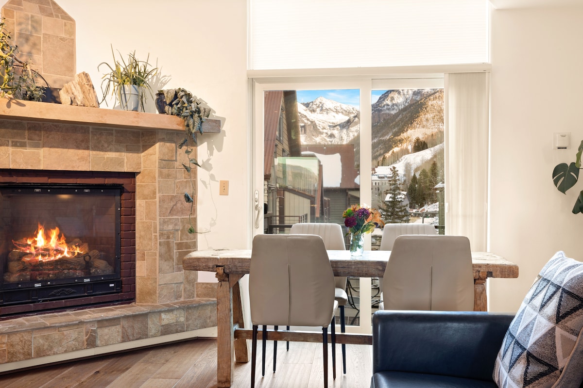 Sunny second floor (penthouse) one-bedroom historic main street condo with deck just steps away from restaurants, cafés, shops, skiing, hiking, and much more! This turn-of-the-century condo offers a comfortable and stylish retreat, ideal for couples looking to explore the charm of downtown Telluride and its many activities. As long-time locals of over 30 years who have had to relocate due to family health issues, we are excited to share our condo with fellow travelers who love Telluride!!