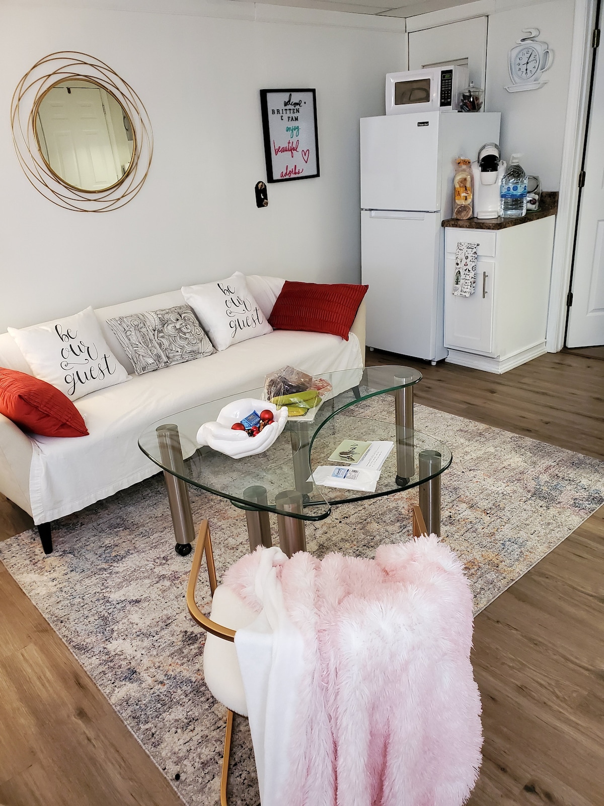 Better than most hotels. PRIVATE unit w/separate entrance & privacy fenced yard. Private suite w/bathroom (no standing shower) Huge bathtub fridge/freezer microwave, air fryer, hot plate, toaster & K cup coffee maker. Queen bed, quality sheets, couch & table, dresser & closet space. patio furniture , grill and fire pit. Beautiful & quite location. PETS allowed w/ pet fee of $25 per day