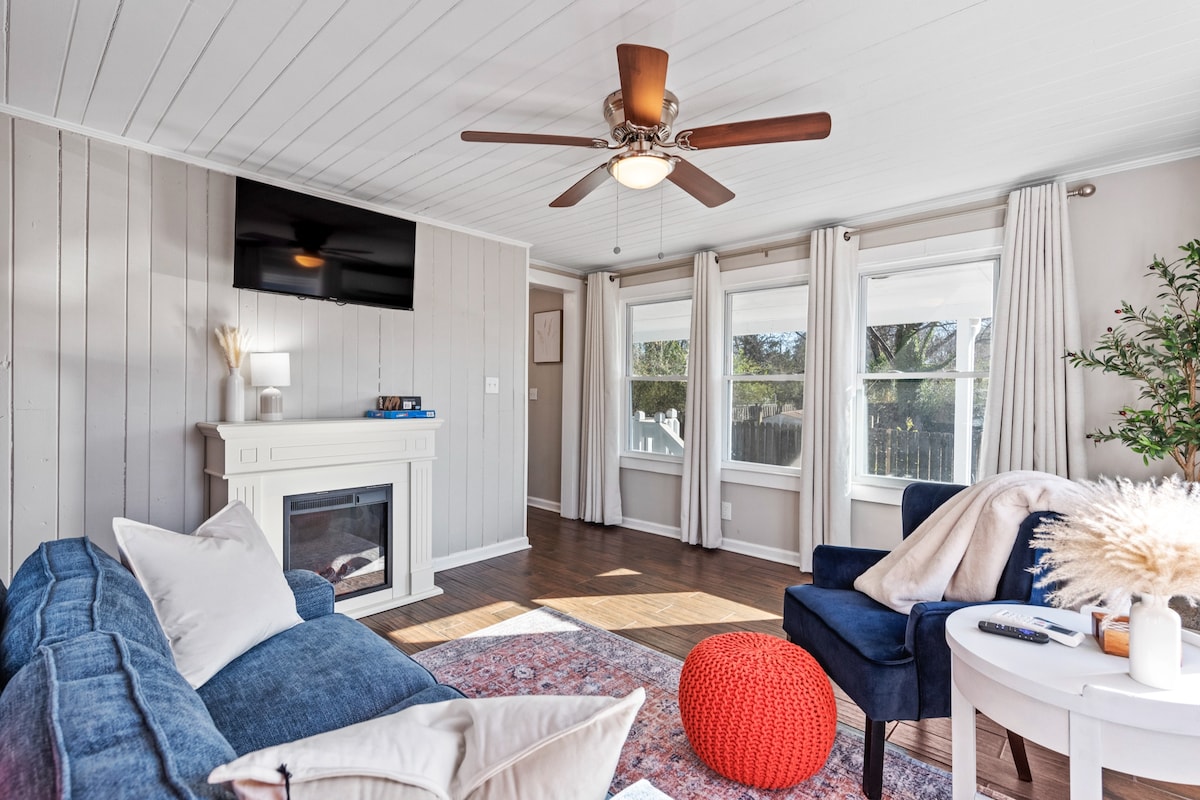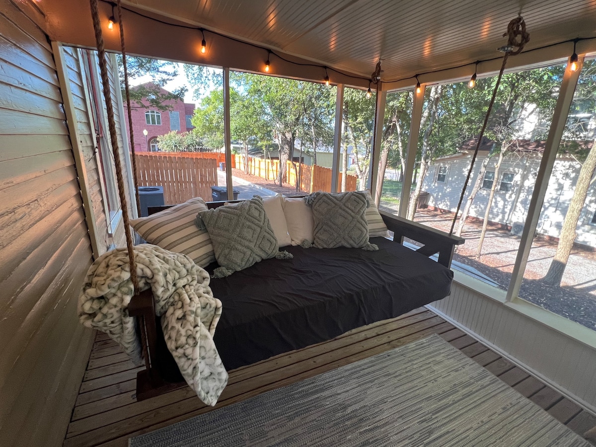 Your family will be close to everything when you stay at this downtown Cartersville home. Walk to all downtown shops and restaurants. Relax in the mornings drinking coffee on the attached screened in porch. Spacious parking lot behind home that is private and secure. Family friendly setup with a huge sectional couch that pulls out into a full queen sleeper with all needed linens and pillows. Coffee bar setup, dedicated workspace with printer, wireless wifi and tv’s in each room.