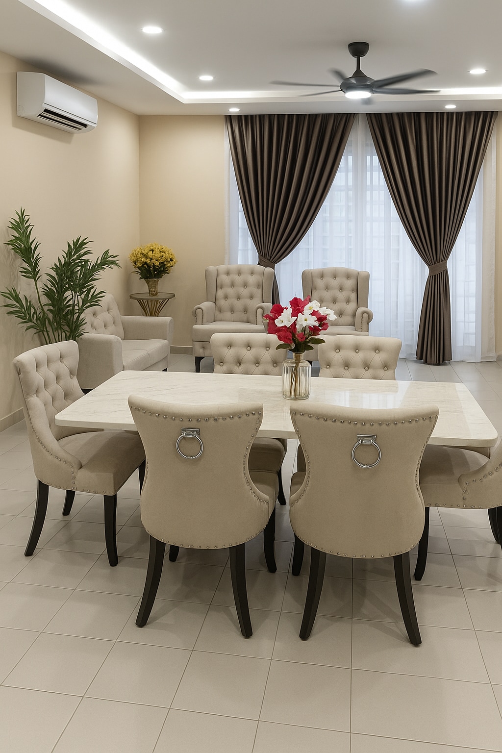 - A spacious lounge with contemporary touches perfect for relaxation and bonding. - Calm and cozy ambiance featuring soft colour palettes and high-quality curtains. • air-conditioned at living room and bedrooms to ensure a refreshing and restful experience. - Whether it’s a family trip or a getaway with close friends, our homestay is your gateway to comfort, elegance, and peace of mind. - Conveniently situated just a short drive from Port Dickson’s top attraction