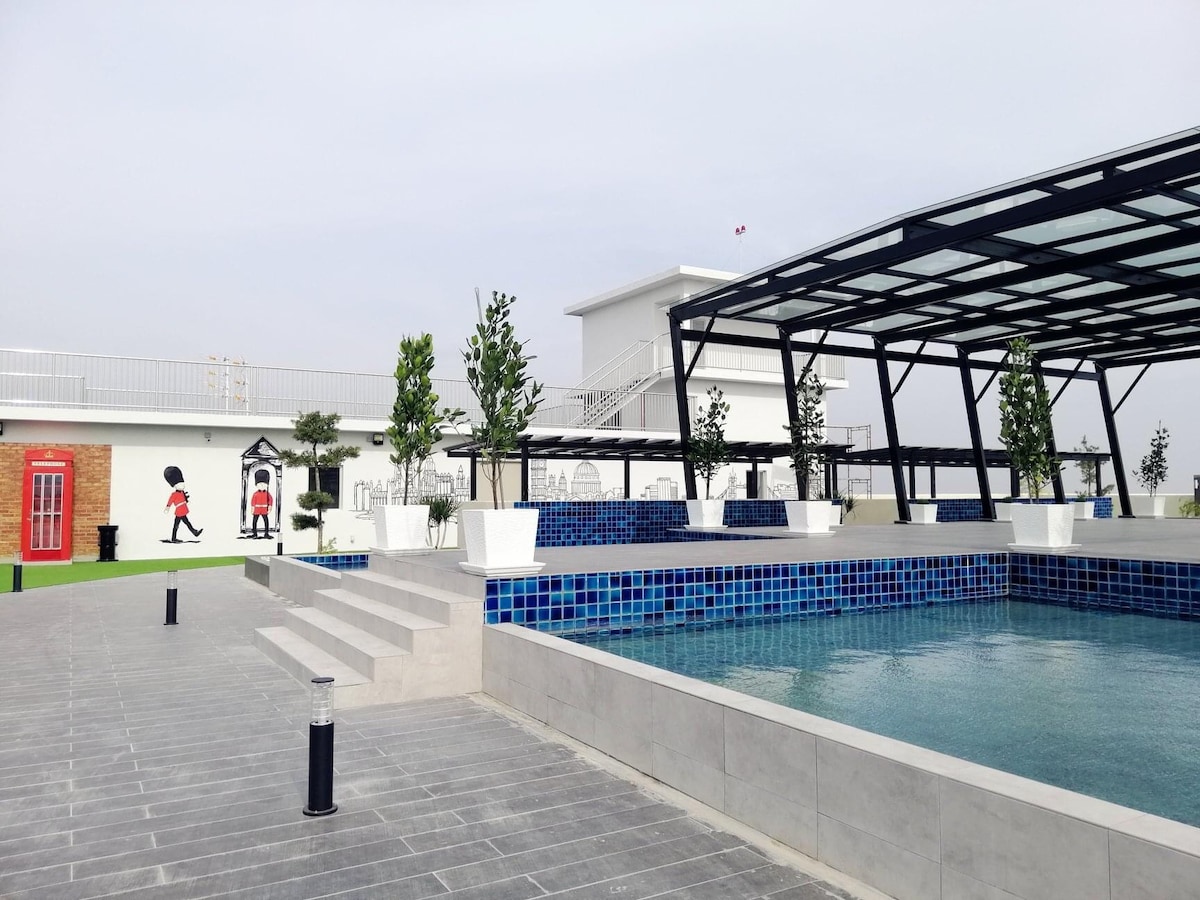 Stylish apartment in town with fast wifi, Astro full pack, Netflix, and Disney+. Enjoy access to pools, gyms, and a rooftop sky garden. Centrally located near AEON mall, TGV cinema, and restaurants. Experience it yourself!