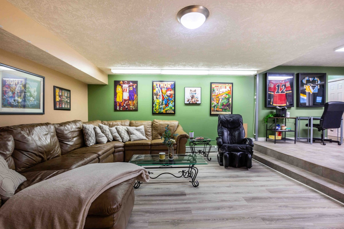Welcome to this thoughtfully modeled unique entertainment themed basement suite located just minutes from the heart of Edmonton’s downtown. While this suite gives you the home away from home feel, it is perfect for letting loose and having some fun. It’s location is ideal for getting to many popular destinations throughout the city within minutes, such as a 5 minute drive to Rogers Place Ice District, 12 minutes to Whyte Avenue, and many more of Edmonton’s top rated attractions.