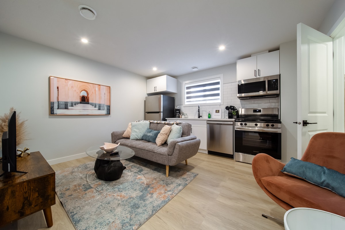 The Norwood is a modern basement bachelor apartment. The space offers a private entrance, comfortable queen bed, fully equipped kitchen (with gas stove) and cozy living room. Ample FREE street parking. The Norwood is in a quiet residential neighborhood. No unregistered guests, party's or excessive noise allowed.