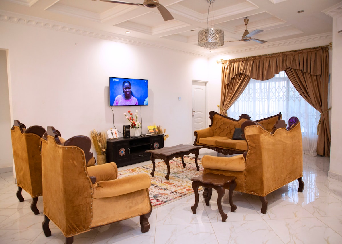 Comfortable and secure home in the heart of Tema. Fast Wi-Fi throughout and an automatic backup generator so power outages won’t bother you. Bedrooms have memory-foam mattresses and TVs, and the kitchen is fully equipped. Close to markets, restaurants, and everything you need for a convenient stay. • 🚗 5 min to motorway • 🛍️ 15 min to Accra Mall • ✈️ 20 min to airport