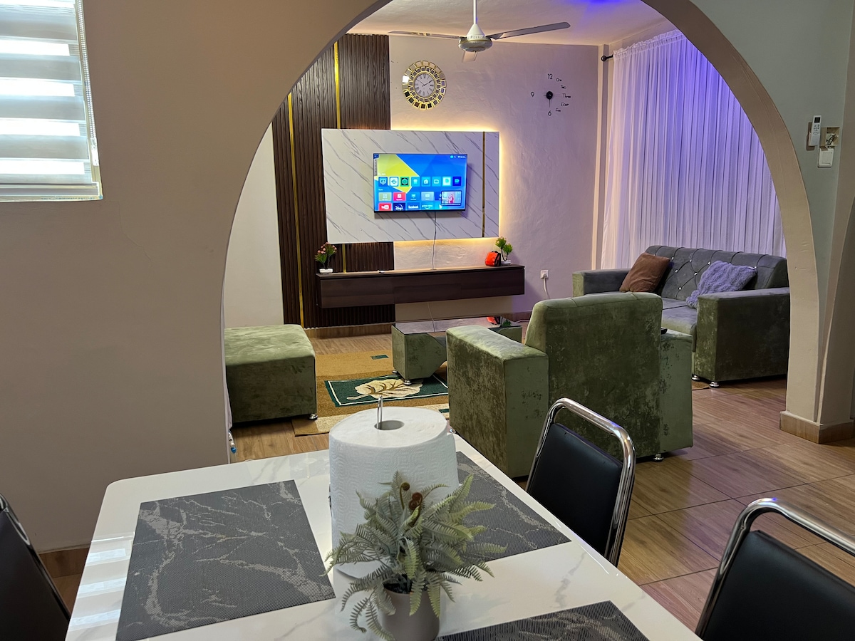 The Serene Haven — Your Calm Landing in Accra Just five minutes after touching down at Kotoka Airport, step into a space where the city slows and comfort takes over. Our spacious 2‑bedroom retreat in Airport Residential blends modern design with a quiet, restorative atmosphere. Wake to soft light, unwind in generous spaces, and enjoy Accra’s most prestigious neighborhoods right at your doorstep. For business, romance, or a long stay, Serene Haven becomes the peaceful chapter of your Accra story