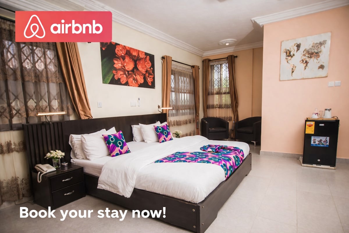 A prestigious boutique style accommodation unit not far from Kotoka International Airport and township of East-Legon. Fully equipped en suite 16 rooms and other features: - Wi-fi access - Flat Screen Tv's - Fully equipped wardrobes - Living room - Air conditioned rooms through out - Refrigerator in each room. - Generator unit. - Landscape garden