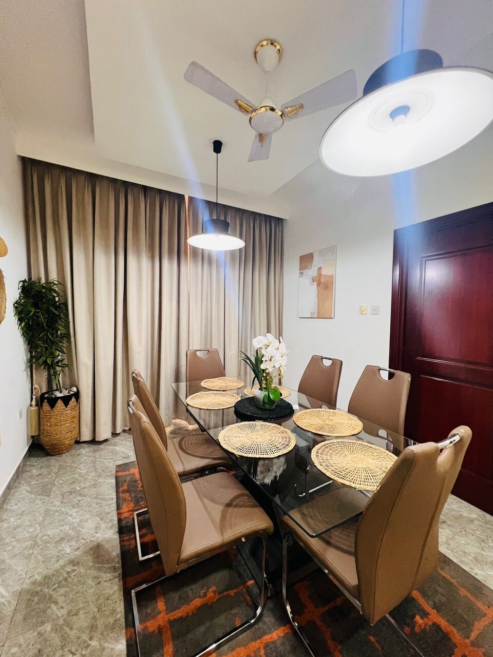 Oyster 3 Sakumono - Holiday Home is a guest house with 4 apartments on offer. Featuring full furnished bedroom (X4) free private parking, a kitchen and free WiFi. The guest house has a fitness room and lounge. with 85" SMART TV and Subwoofer so you can enjoy the cinema atmosphere. All bedrooms have access to common terrace and/or outdoor seating area. Each apartment is furnished with a 55'' TV, Stylish Ceiling Fan. Each apartment has a private bathroom, an arm chair, etc.